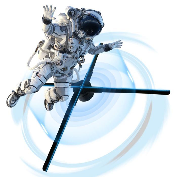• big hologram fan: The transparent 3D holographic display seems to float in the air, offering a powerful visual effect that captivates onlookers and enhances the impact of your advertising